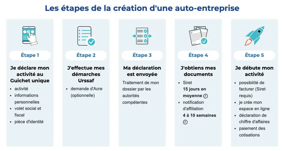 Depuis 2023, les formalités de création passent par le guichet unique géré par l’INPI. Dans la pratique, vous créez l’entreprise sur le guichet unique, puis vous gérez vos déclarations sur l’espace URSSAF.